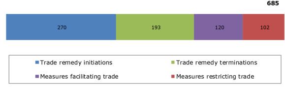 · WTO members also implemented 120 new measures aimed at facilitating trade. The trade coverage of the import-facilitating measures introduced by WTO members during the review period was estimated at USD 544.7 billion. This is the second highest trade coverage reported for this type of measures since October 2012.